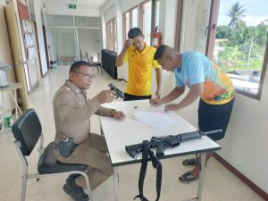 วันที่ 21 มีนาคม 2568 เวลา 10.00 น. พ.ต.ท.สาณิต ฆังคะมโณ สว.สภ.บ้านโหนด พร้อมเจ้าหน้าที่งานส่งกำลังบำรุง ได้เรียกตรวจสอบสภาพอาวุธปืนและทรัพย์สินของทางราชการที่ข้าราชตำรวจได้เบิกไปใช้เพื่อปฏิบัติหน้าที่ พร้อมกำชับให้ข้าราชการตำรวจทุกนายห้ามนำสิ่งของของทางราชการทุกชนิดไปจำหน่ายหรือจำนำ และเน้นย้ำให้หมั่นดูแลรักษาให้มีความพร้อมในการใช้งาน หากพบว่าชำรุดให้รีบแจ้งเจ้าหน้าที่ทราบ